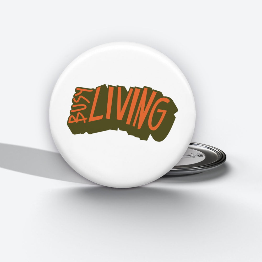 Busy Living Pin Button – Inspiring Quote for a Fulfilled Life
