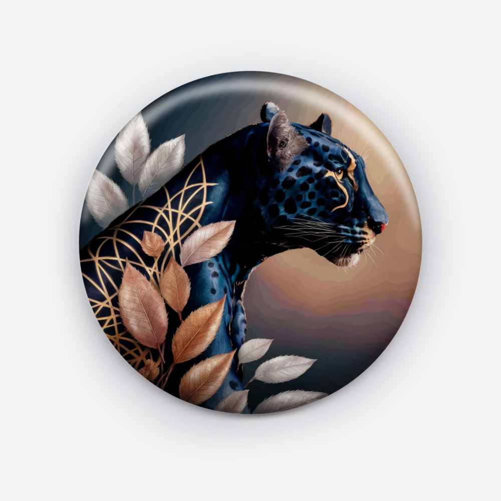 The Fearless Feline Panther pin button—Embrace your bold side with this striking accessory featuring a powerful panther design.
