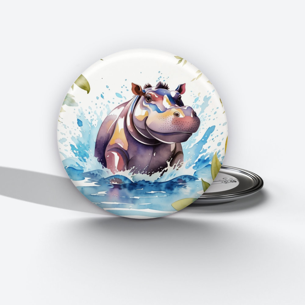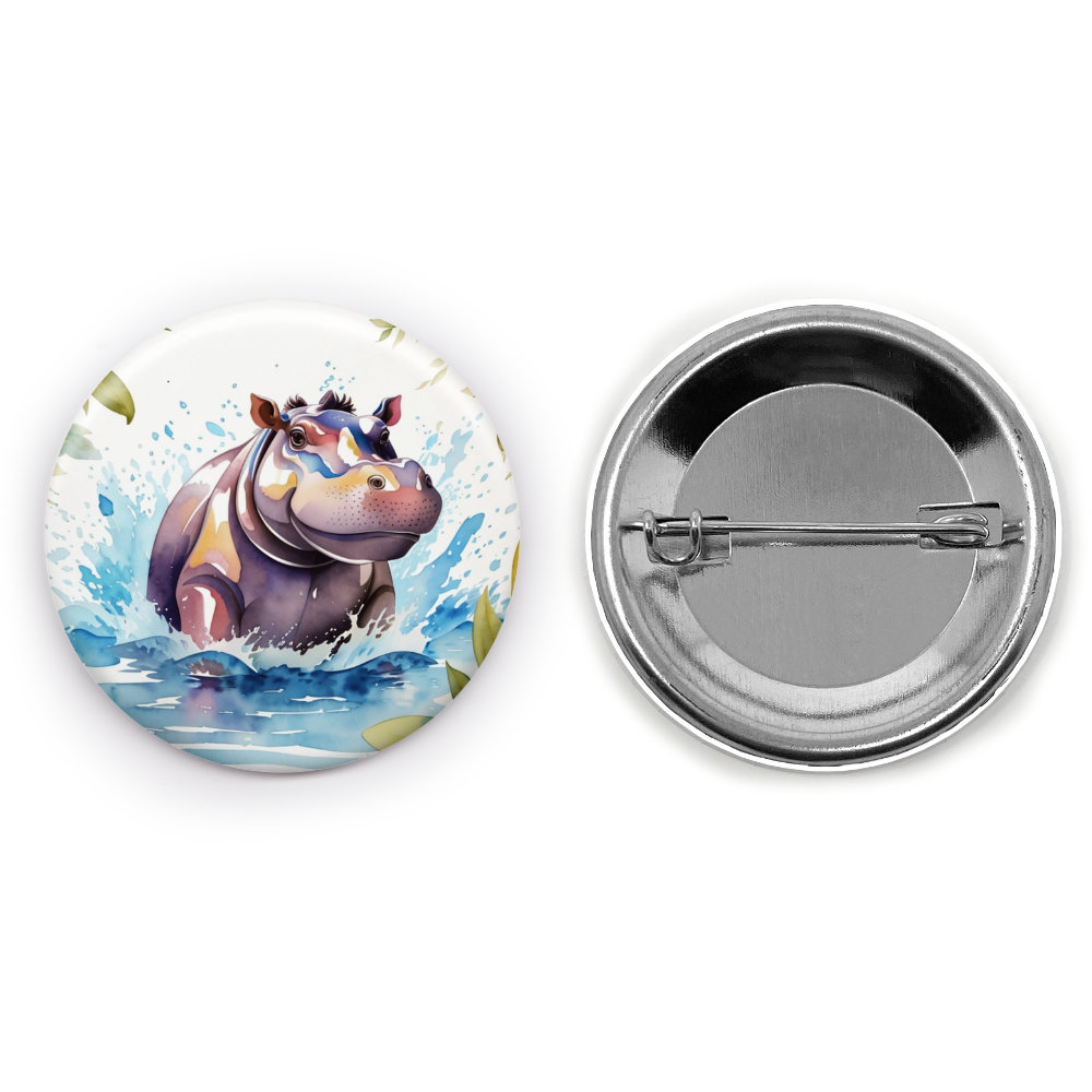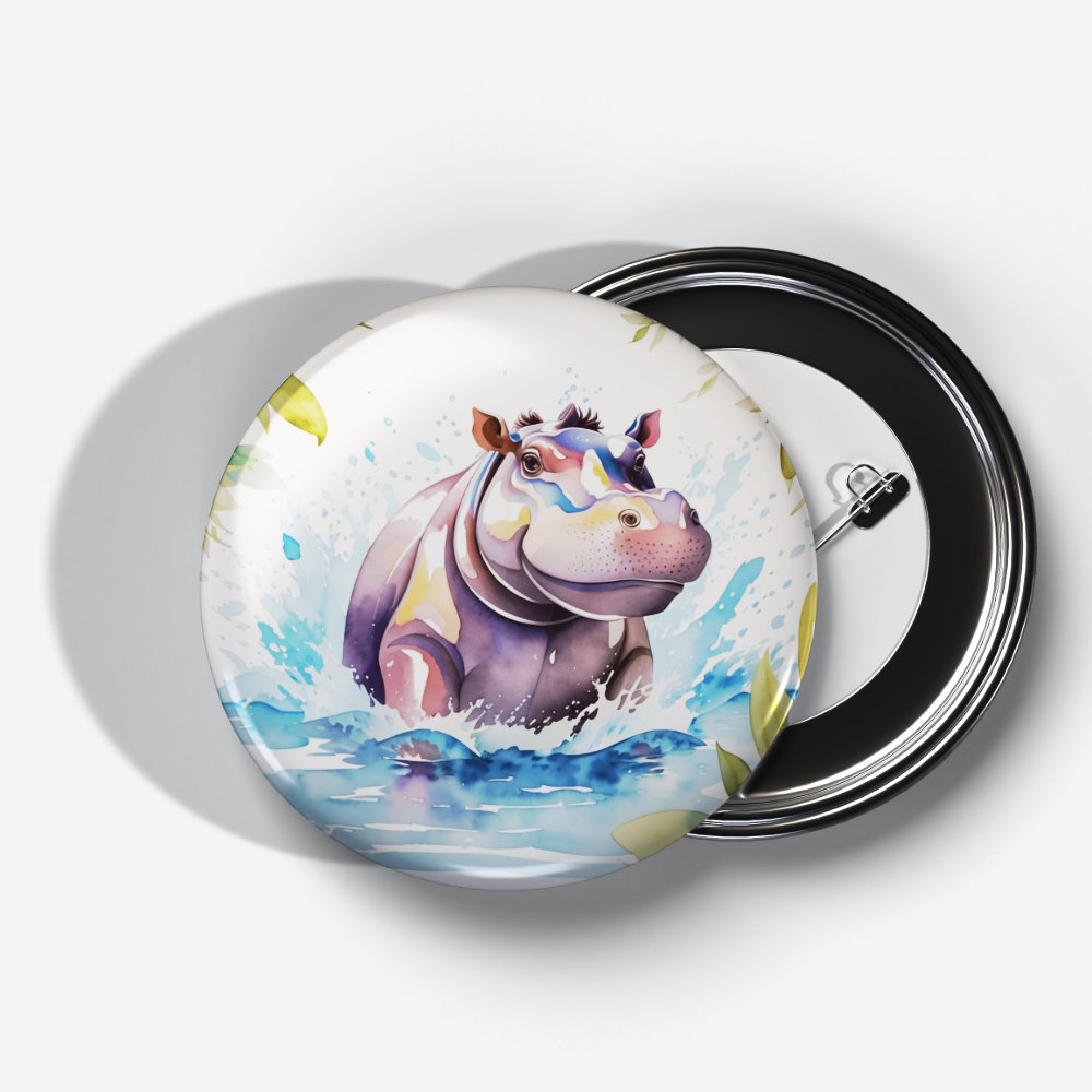 The Happy Hippo Hugs pin button—Brighten up your day with this adorable and whimsical pin button featuring a charming hippo design. With its playful and endearing illustration, this accessory is perfect for adding a touch of fun and personality to your jacket, bag, or hat. Made from high-quality materials, this pin button is both durable and stylish, making it a great addition to any collection or a delightful gift for animal lovers. Bring a smile to your everyday style with the Happy Hippo Hugs pin button!