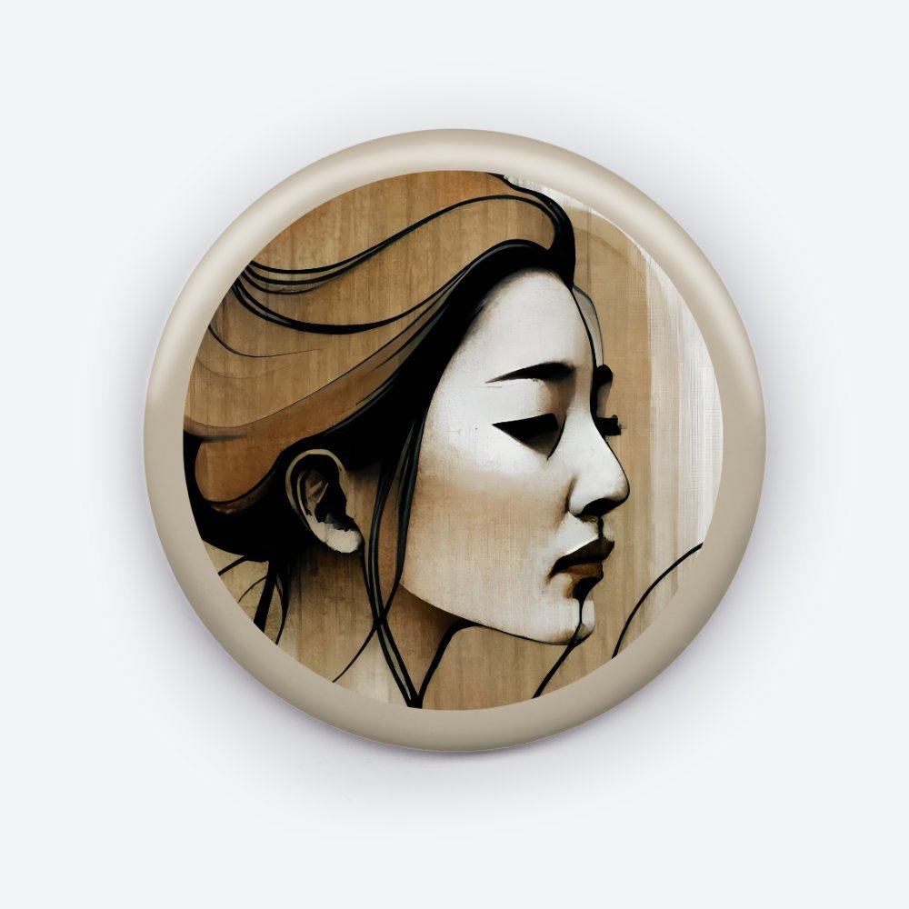 This Japanese art pin button features a stunning design inspired by traditional Japanese aesthetics.