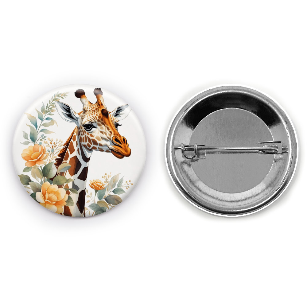 The Long-Necked Wonders giraffe pin button—Celebrate the majesty of wildlife with this charming pin button featuring a delightful giraffe design. Its unique, whimsical depiction of the long-necked wonder adds a playful and distinctive touch to any jacket, bag, or hat. Made with high-quality materials, this pin button is both durable and eye-catching, making it an ideal accessory for animal lovers or a great gift for someone special. Embrace the elegance and grace of the giraffe with this fun and stylish addition to your collection.