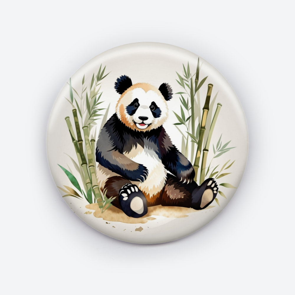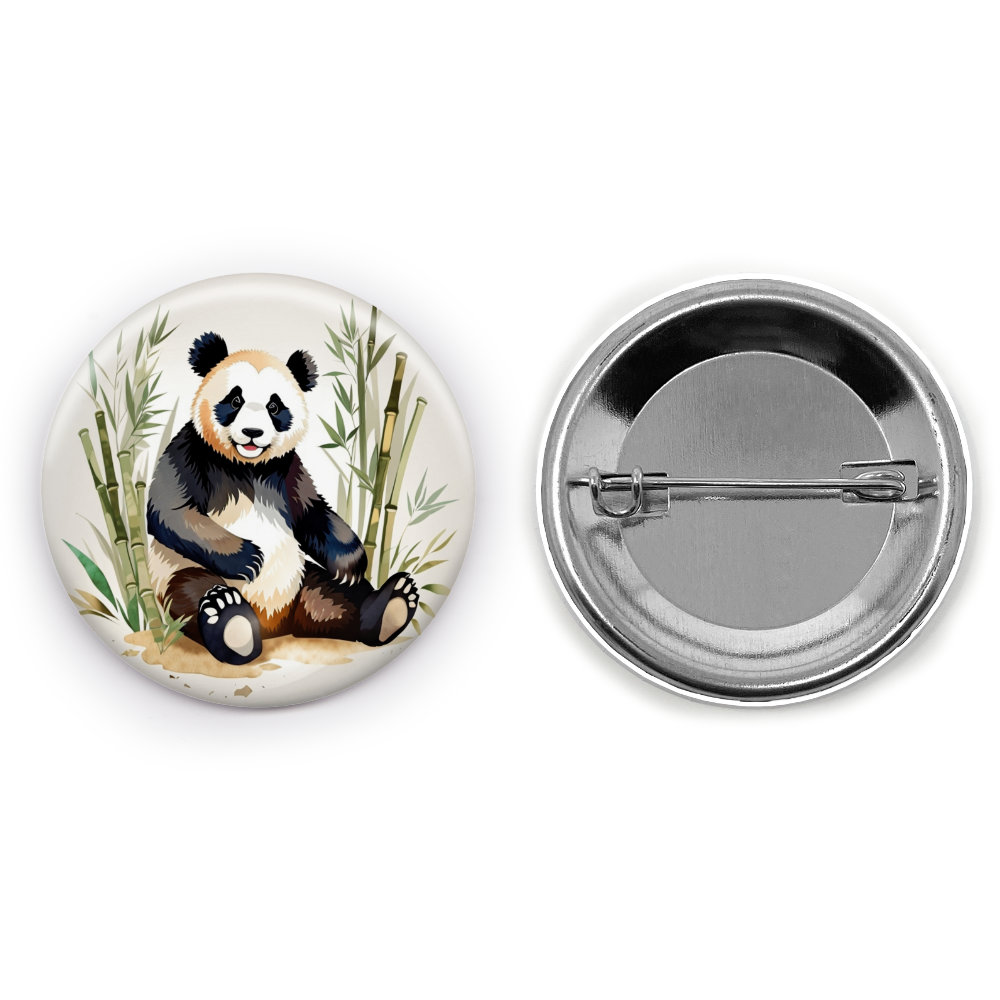 Panda Paradise pin button—Embrace the adorable charm of pandas with this delightful pin button that features a playful panda design.