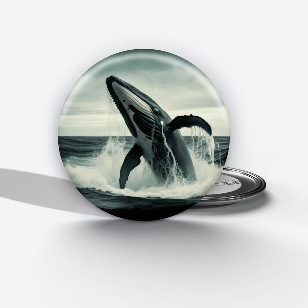 The Splash of Fishy Fun whale pin button—Dive into a world of playful marine vibes with this charming pin button featuring a whimsical whale design. Perfect for adding a splash of oceanic fun to your jacket, bag, or hat, this accessory is crafted to brighten up your day with its vibrant colors and delightful character. Made from durable materials, it’s a fantastic addition to your collection or a great gift for ocean lovers and those who appreciate quirky designs. Make waves with your style and bring a touch of the sea wherever you go.