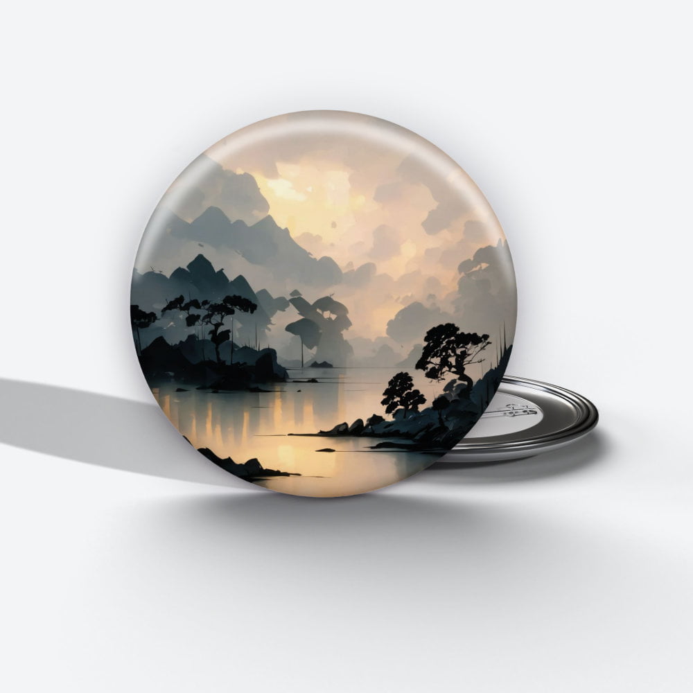 This Japanese art pin button features a stunning design inspired by traditional Japanese aesthetics.