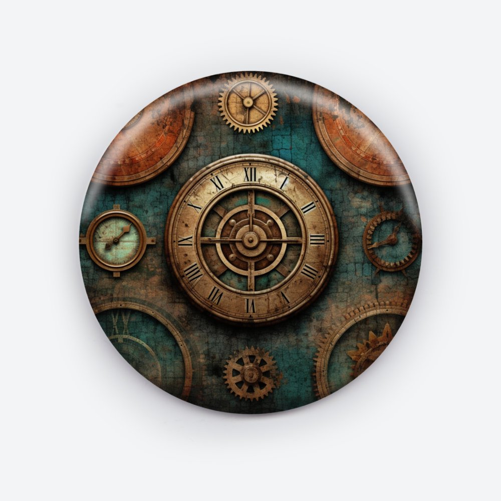 Elevate your style with our steampunk pin button, featuring intricate gears and vintage aesthetics.