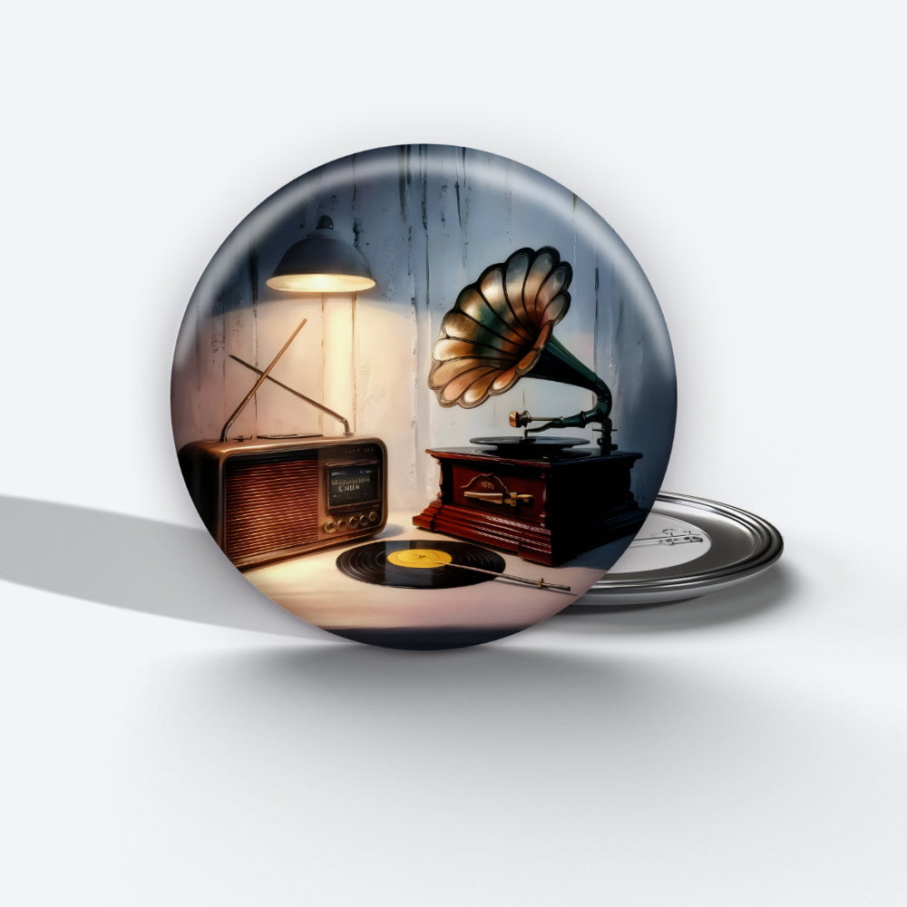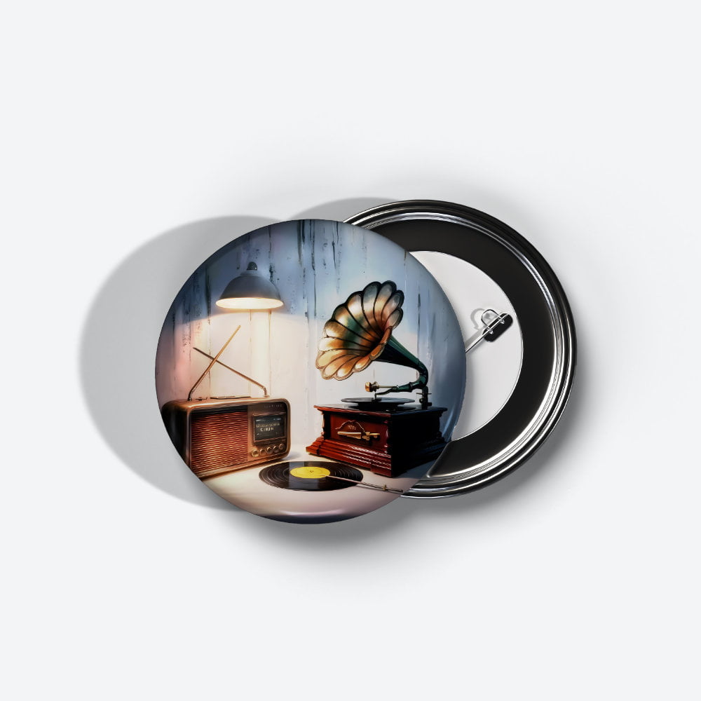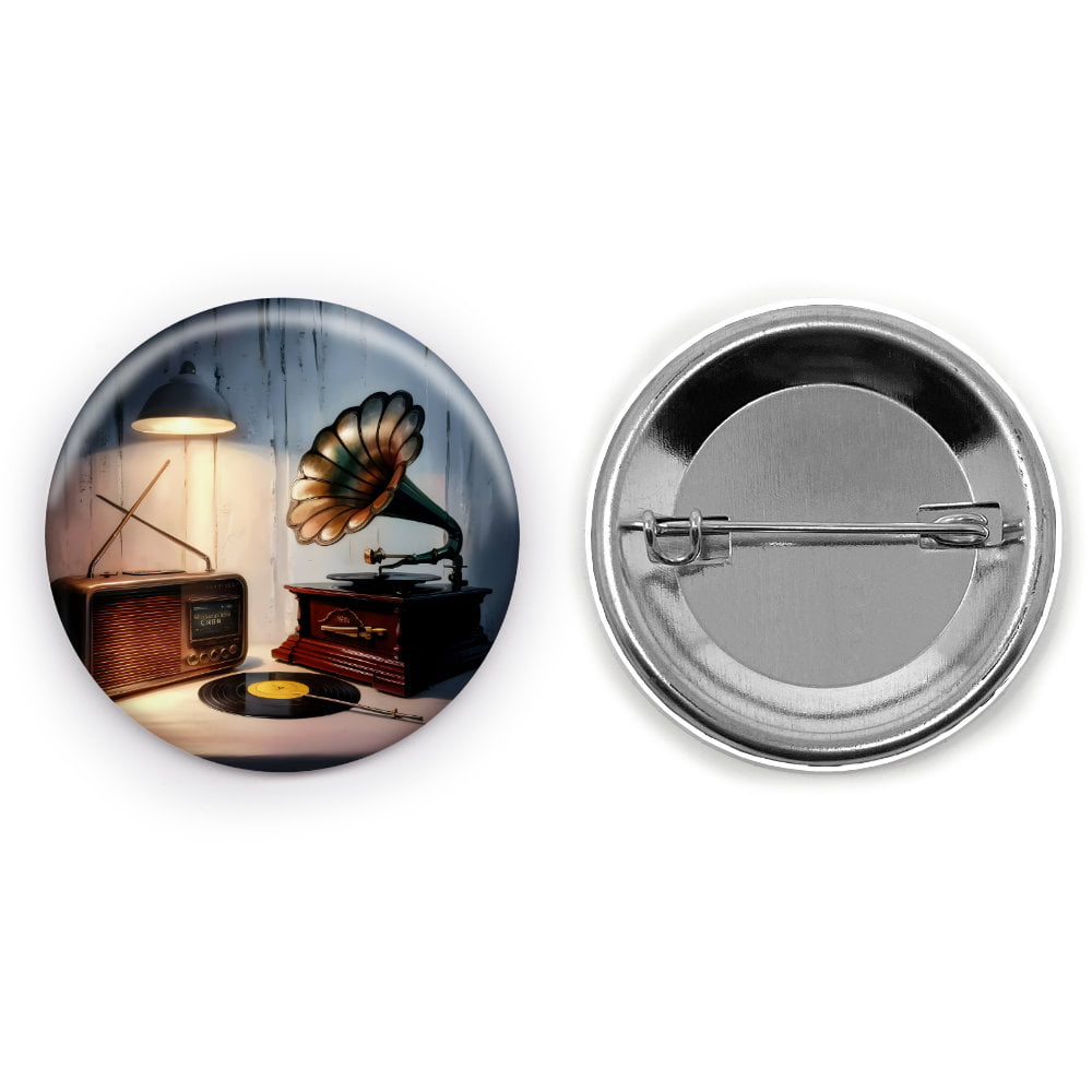 Celebrate the golden era of music with our retro music pin button! Featuring vibrant colors and classic designs